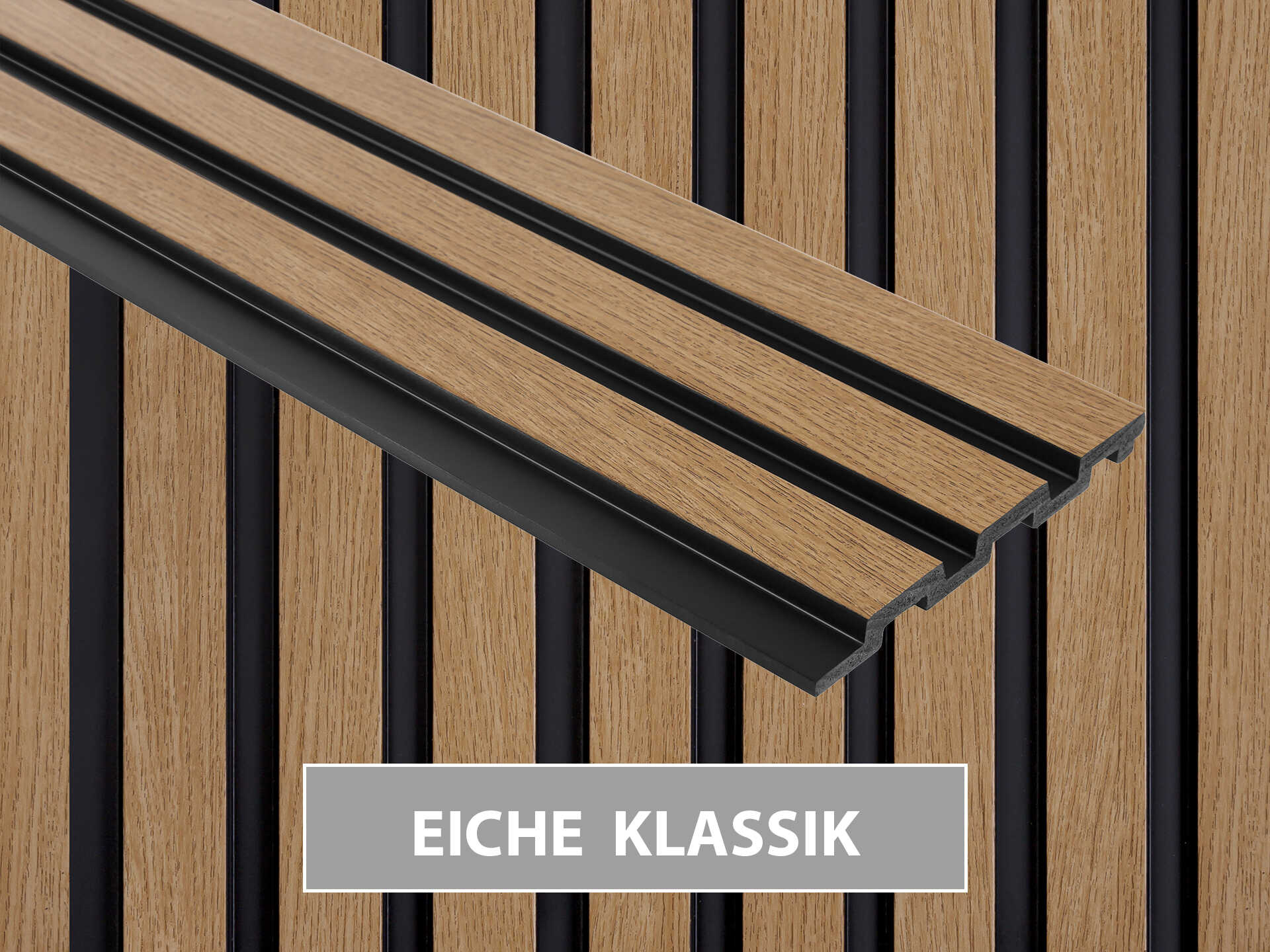 - Wandpaneele mit 26 mm breiten Streifen in 6 verschiedenen Farbtönen -